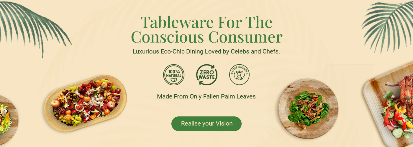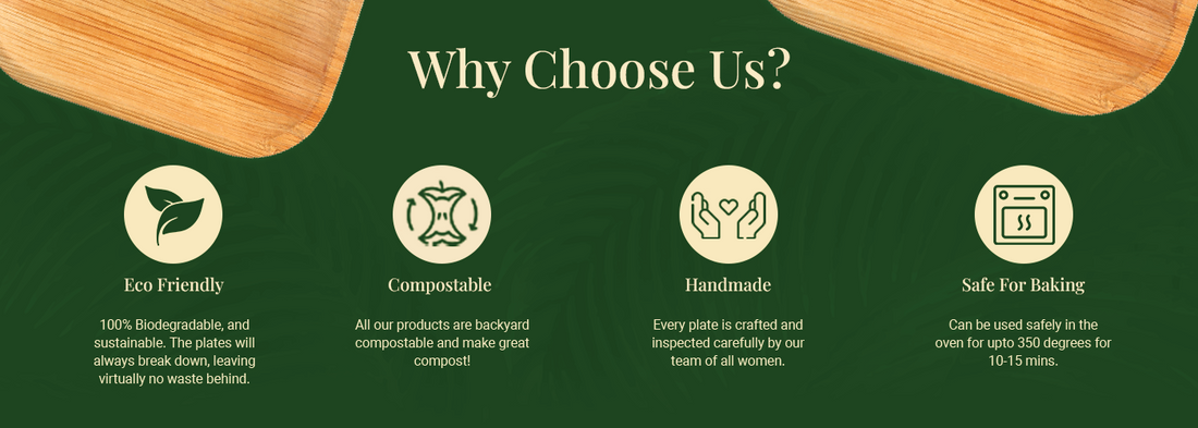 Serving trays made from naturally fallen palm leaves, offering a beautiful and...