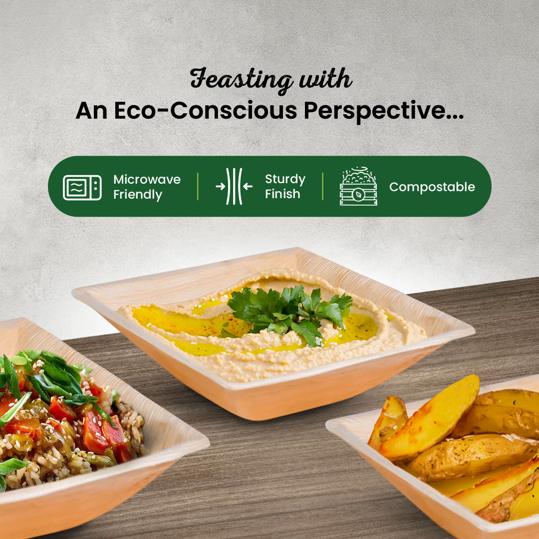 These large 18cm (7") square bowls are expertly crafted from natural palm leaves, offering an eco-friendly alternative for serving. Their sturdy, biodegradable design supports both hot and cold foods, combining sustainability with practical use. Ideal for events and everyday dining, they bring a natural aesthetic while reducing environmental impact.